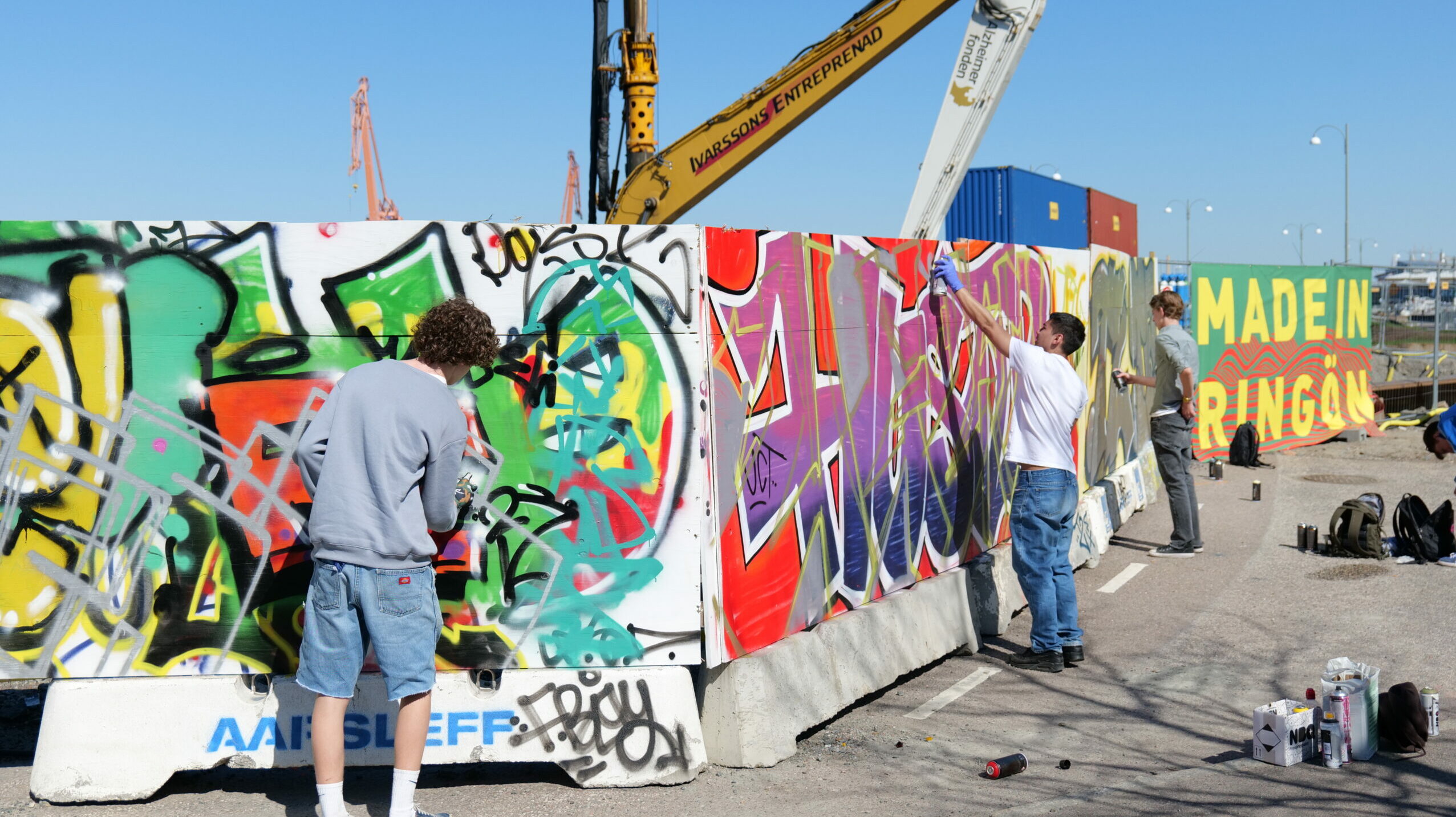 Konststudenter målar elskåp på Masthuggskajen